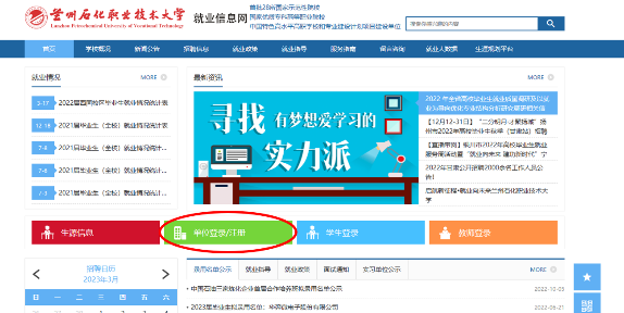 1.进入yl6809永利主页“招生就业—就业信息”,“单位登录/注册”进行登录。