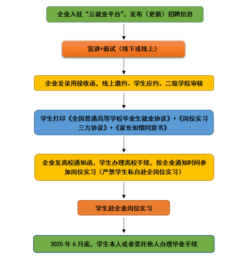 2025届高职毕业生就业招聘于2024年5月上旬开始,所有招聘企业须入驻学校“云就业平台”。招聘企业可以根据实际,采取线上、线下招聘两种方式进行,如果采用线下宣讲会方式,宣讲地点选为“机电楼二楼yl6809永利集团会议室”,招聘时间由企业先自行确定,我院根据实际情况安排调整,招聘企业需注意最终确定的时间。