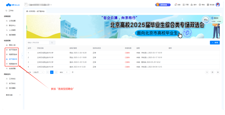 3.企业登录后可以发布或更新招聘信息,招聘时间根据企业实际情况填写到5月12日以后,企业招聘信息发布后,学院会根据学校招聘情况进行时间微调,企业可以通过云就业平台查看最终的宣讲时间及地点。