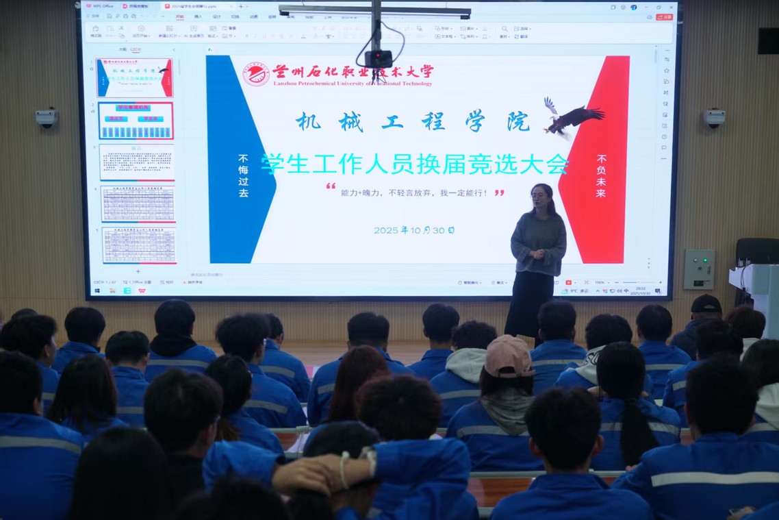 本次竞聘大会严格遵循公平、公正、公开的原则,大会开始,由学院辅导员主持,简单介绍了此次大会的议程。分为“竞聘演讲”和“投票选举”两个环节。随后,竞聘者以部门为整体按顺序上台,围绕个人基本情况、对竞聘岗位的认知、过往工作经验及未来工作规划展开演讲,展现出机械学子积极进取的精神风貌与服务同学的热情。在竞聘者演讲的过程中,评委老师和其他同学同时进行投票,统计票数,确定组成了新一届学生会骨干团队,涵盖学习部、文艺部、体育部等多个部门。最后,学院学生工作负责人对本次竞聘大会的组织工作表示肯定,同时寄语新一届学生会:要守住底线,强化责任担当,创新工作方法,打造更具凝聚力与影响力的学生组织。