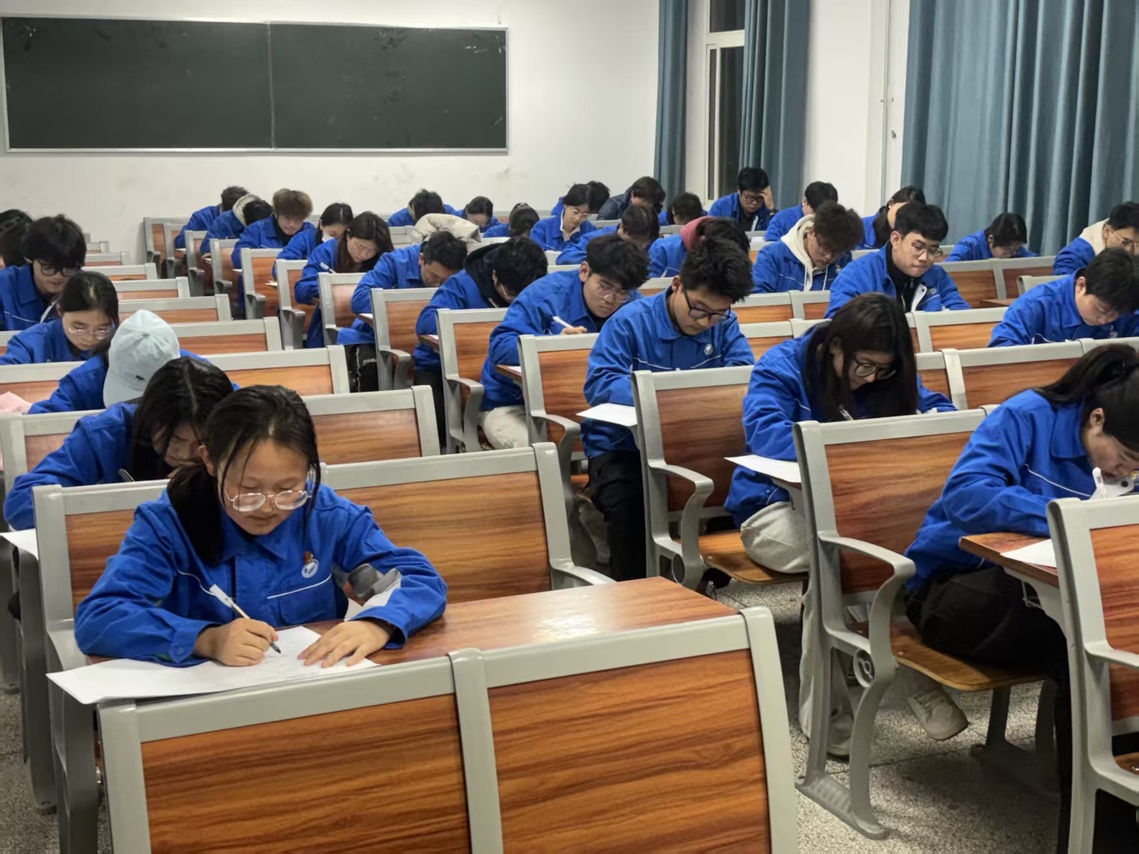 竞赛现场秩序井然,氛围严谨。同学们统一身着工装,精神抖擞地按时签到入场,依指定座位有序就座,全程规范高效、顺畅有序。开考后,大家迅速进入答题状态,或低头沉思、梳理逻辑,或挥笔疾书、认真作答,个个沉着冷静、从容不迫。整个考场唯有纸笔摩擦的沙沙声此起彼伏,成为赛场最动人的旋律,生动诠释了机械学子诚实守信、求真务实、积极进取的精神内核。